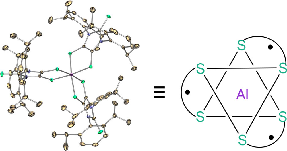 ABSTRACT: A stable aluminum tris(dithiolene) triradical (3) was experimentally realized through a low-temperature reaction of the sterically demanding lithium dithiolene radical (2) with aluminum iodide. Compound 3 was characterized by single-crystal X-ray diffraction, UV–vis and EPR spectroscopy, SQUID magnetometry, and theoretical computations. The quartet ground state of triradical 3 has been unambiguously confirmed by variable-temperature continuous wave EPR experiments and SQUID magnetometry. Both SQUID magnetometry and broken-symmetry DFT computations reveal a small doublet–quartet energy gap [ΔEDQ = 0.18 kcal mol–1 (SQUID); ΔEDQ = 0.14 kcal mol–1 (DFT)]. The pulsed EPR experiment (electron spin echo envelop modulation) provides further evidence for the interaction of these dithiolene-based radicals with the central aluminum nucleus of 3.