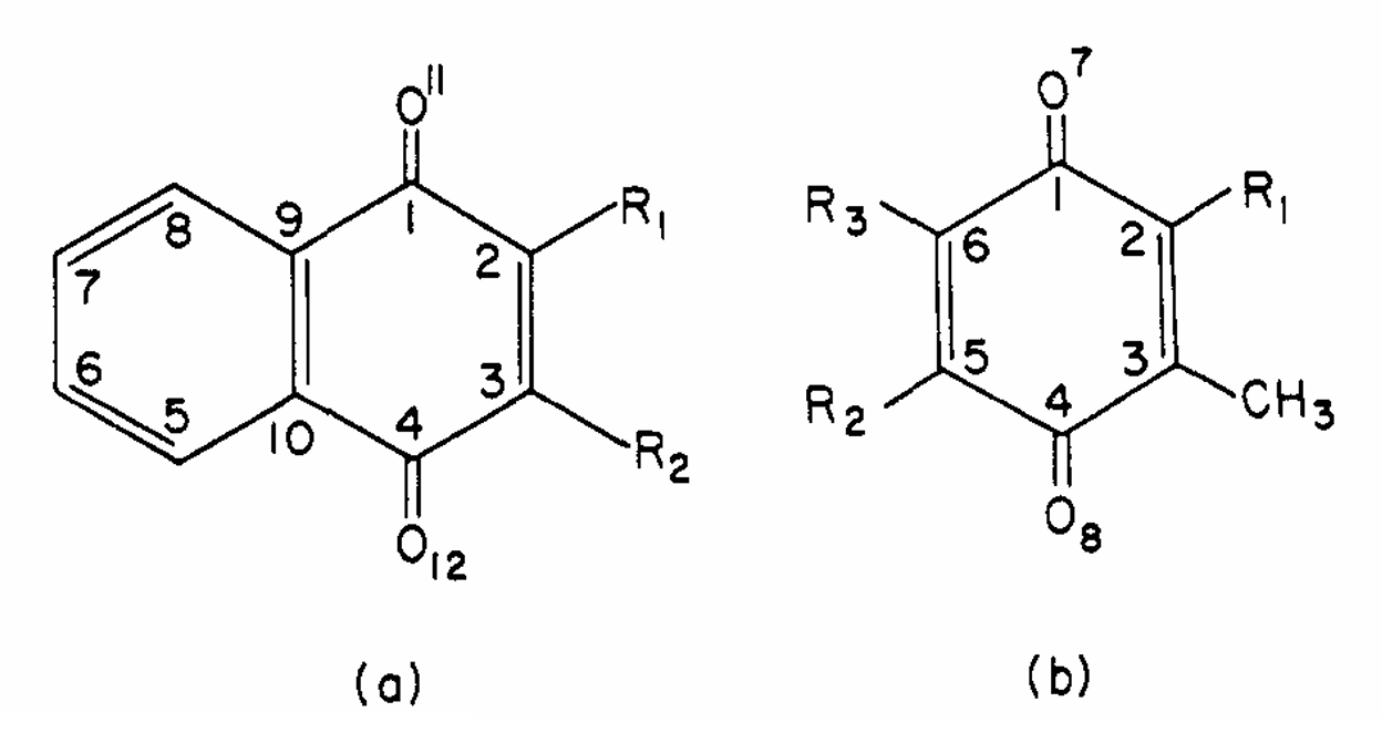 ABSTRACT: The electron nuclear double resonance (endor) spectra of ethanolic solutions of several semiquinones of biological interest have been observed, and splitting constants as well as per cent enhancement measurements have been made. The endor results, which are especially useful in obtaining unequivocal analyses of the more complex esr spectra, also showed greatly increased resolution by resolving small splitting constant differences unobservable in the esr. This latter result was due to a factor of ˜5 decrease in the endor as compared to the esr widths. These results were used to evaluate spin densities. MO calculations which were performed were found to be in satisfactory agreement with the "experimental" spin densities, including those at positions of small density. It is found that the introduction of a long side chain in the vitamin semiquinones in place of a methyl group has very little effect on the spin density distribution, including that at the ring carbon to which the side chain is attached. Alternating line width effects were observed in the esr of the semiquinones derived from vitamin K1 and coenzyme Q-10 (ubisemiquinone, USQ) with associated line width effects in the endor. They are due to rotation of the aromatic ring relative to the attached methylene protons of the side chain. At -50°, this motion is sufficiently slow in USQ in dimethoxyethane (DME) that two inequivalent methylene protons are observed in the endor and esr. Comparable activation energies and preexponential factors were found for USQ in DME and ethanol with similar results for vitamin K1.