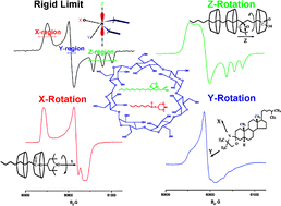 ABSTRACT: The molecular dynamics of spin-labeled compounds included into the solid phase of cyclodextrins (CDs) has been studied using conventional (X-band) ESR at 9 GHz and high-field high-frequency (HFHF) ESR at 240 and 170 GHz. The patterns of axial rotation at these higher frequencies are clear just by inspection of the spectrum, unlike the case for 9 GHz spectra. That is HFHF ESR is sensitive to molecular motion about the diffusion axis collinear with the X, Y or Z-direction of the magnetic g- and A-tensors of the nitroxide moiety (referred to, respectively, as X, Y or Z-rotation). For doxyl stearic acids (Z-rotation) and TEMPOyl caprylate (X-rotation) included in β- and γ-CDs we were able to determine the rate of molecular motion and the corresponding potential barriers. We emphasize that determining the rate of Z-rotation by ESR is feasible only using HFHF ESR. For the X-rotation case we suggest that the motion of the nitroxide moiety consists of fast small-angle librations about the magnetic X-axis superimposed by rotational diffusion about the same axis. The potential barrier of 1.7 Kcal mol−1 for this rotational diffusion is unusually low. A fascinating feature of TEMPO derivatives included in β-CD is the detectable molecular motion at temperatures below 77 K. For the other CD-spin probe systems, we used multifrequency analysis to assign the conformations of spin-labeled molecules. A dramatic spectral change for 16-sasl in β- and γ-CDs at ˜260 K corresponds to a tilting of the position of the nitroxide moiety on the rotating molecule relative to the long diffusion axis, while for TEMPO derivatives in γ-cyclodextrin below 200 K, we observe a rapid transition from fast to very slow rotational motion. More complex features are best studied by means of multifrequency ESR experiments. The visual clarity and the simplicity of analysis of the ESR spectra shown in this work should provide a benchmark for future studies of molecular motion by HFHF ESR.